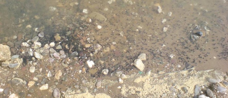 Kröten laichen oft an ungünstigen Stellen: hier in einer Fahrspur